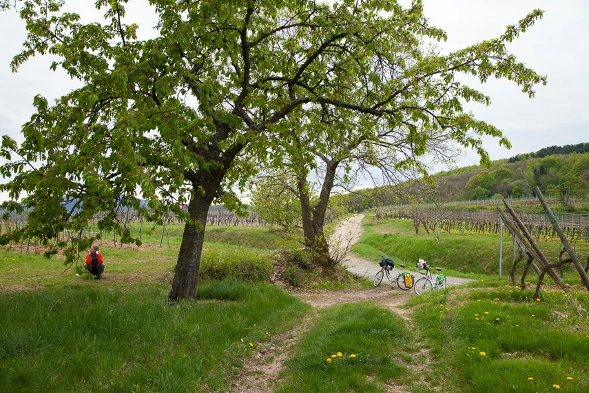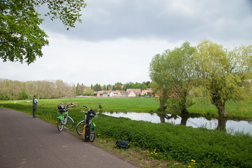 Löydettyämme oikean reitin ulos kaupungista Strasbourgin vilske vaihtuu pian maaseudun rauhaan. Seuraamme Bruchen kanavaa kohti Molsheimia, joka on Alsacen kuuluisaa viinireittiä pohjoisesta lähestyttäessä luonteva aloituskohde. Jo 1950-luvulla viralliseksi nähtävyydeksi luokiteltu viinireitti mutkittelee pohjoisesta etelään kukkuloiden ja pikkukylien halki, noin 170 kilometrin pituisena Vogeesien vuorijonon itärinteiden juurella. Reitti sopii mainiosti myös pyöräillen tutkittavaksi. Selkeästi merkityt ja usein viinitarhojen läpi kulkevat pyörätiet pysyttelevät suurimman osan aikaa pois autoteiltä. Maisemat hivelevät silmää ja majoitusta sekä ruokaa on löydettävissä charmanteista pikkukylistä sopivin väliajoin.